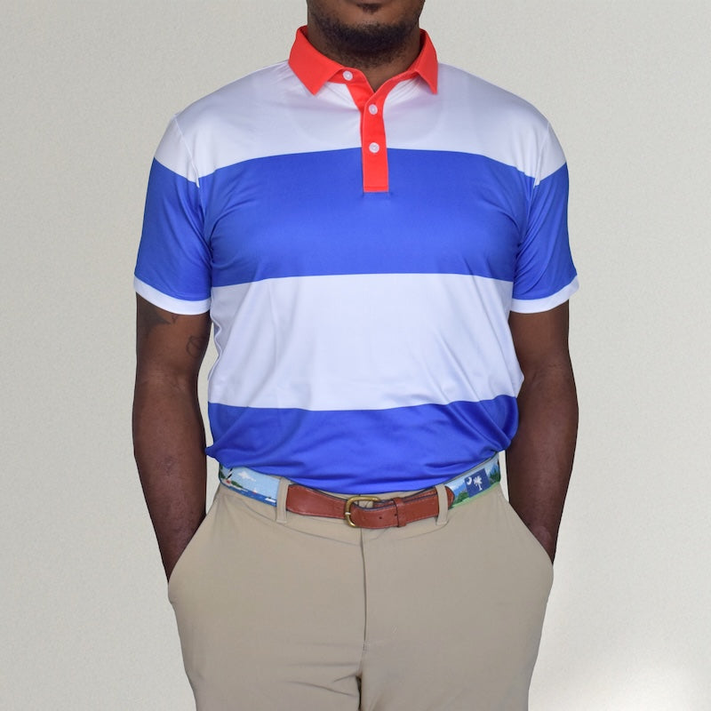 Inspired by the stunning Santa Marta Lighthouse in Cascais, Portugal, this polo is a tribute to a place where old-world charm meets the timeless beauty of the Atlantic coast. For over a century, its distinct blue and white stripes have guided sailors, a beacon of safety and a symbol of Portuguese heritage.